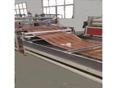 本公司LVT地板生产线由自动上料进入高速热混、造粒。冷混,可再配储料罐及每个进料囗配上环保吸尘系统(使车间无灰尘)、再自动上料到螺杆挤出机、由大板模具结构出料进行五辊定型模定型排辊托架冷却装置、裁边装置、牵引机、自动切割机、自动抬板等组成。机组结构紧凑,性能优良。螺杆、料筒经优化设计,并采用高性能双合金钢专项加工 ,使整机具有塑化均匀,挤出量稳定,产量高,寿命长等优点。主机料筒采用铸铝加 热器加温,风冷却,精密电脑屏控制温度。精密的定型压光装置,通过其良好的调整功能使板材定型优良。切割部分采用定长切割装置,保证板材长度正确 。